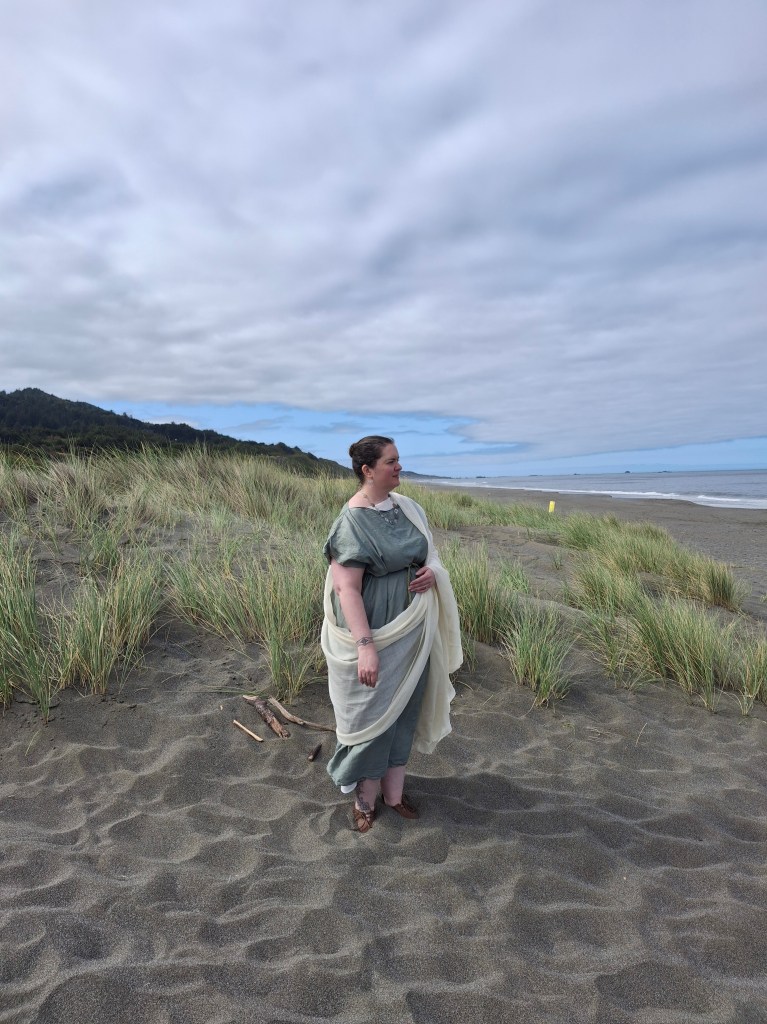 Why “Seams like a lady”? Because my real passion is construction, rather than patterning. Not that all of my garb is hand sewn, or even hand finished (I have a day job, after all), but most of it is hand finished, and my Roman is all hand sewn. It’s been a minute since I’ve visited my sewing research, as I’ve been focused more on metal, but as I’m at the beginning of a new set of 14th century garb, having outgrown my old clothes, I’m getting back into it.